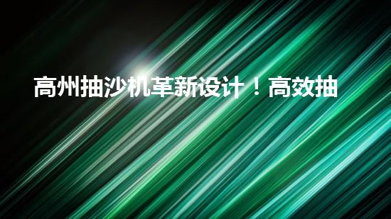 電抽沙機革新設計,提升效率!沙設備關鍵詞解析及市場前景探索